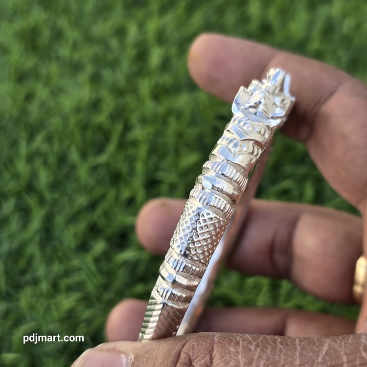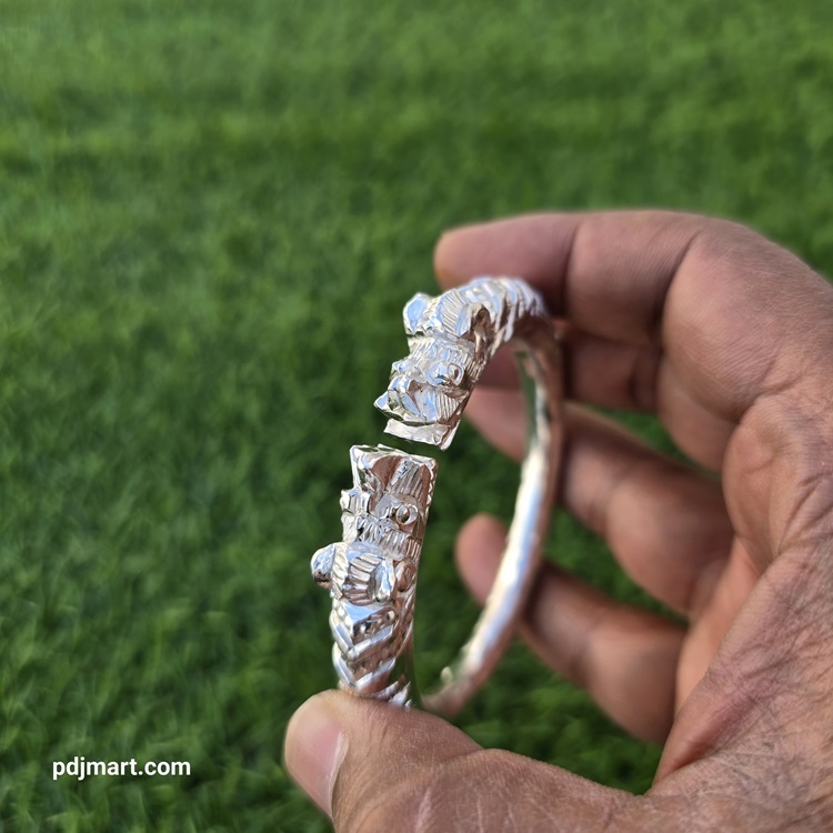 - PURE SILVER HANDMADE NAHARMUKHI MAN’S BANGLE