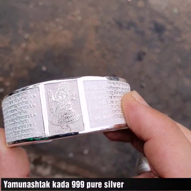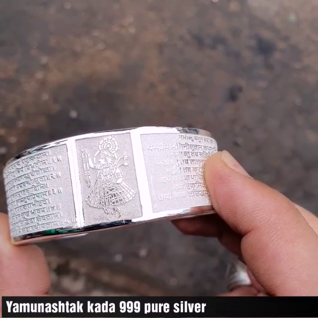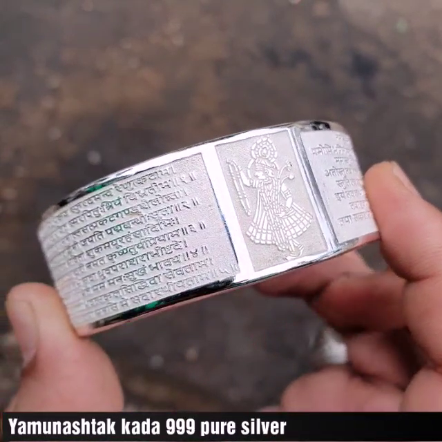 100gm 99% Pure SILVER YAMUNASTHAK WRITTEN KADA FOR MEN WIDTH 25mm