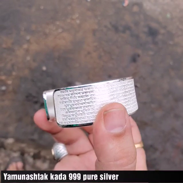 •  Handmade ENTIRE YAMUNASTHAK WRITTEN KADA Gross weight: 100grams | Purity : 99% | Length : 8.5cm. | Width : 25mm