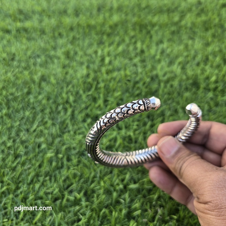 - PURE SILVER HANDMADE NAHARMUKHI MAN’S BANGLE