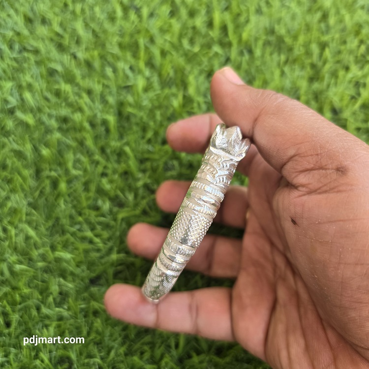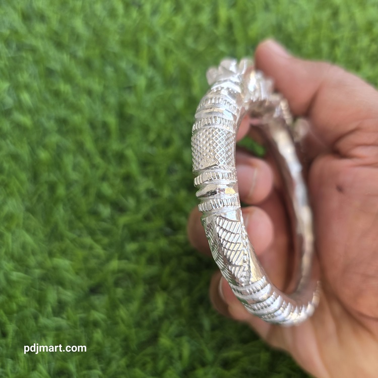 - PURE SILVER HANDMADE NAHARMUKHI MAN’S BANGLE
