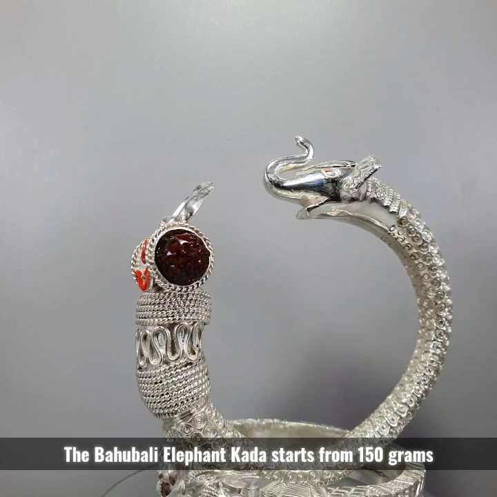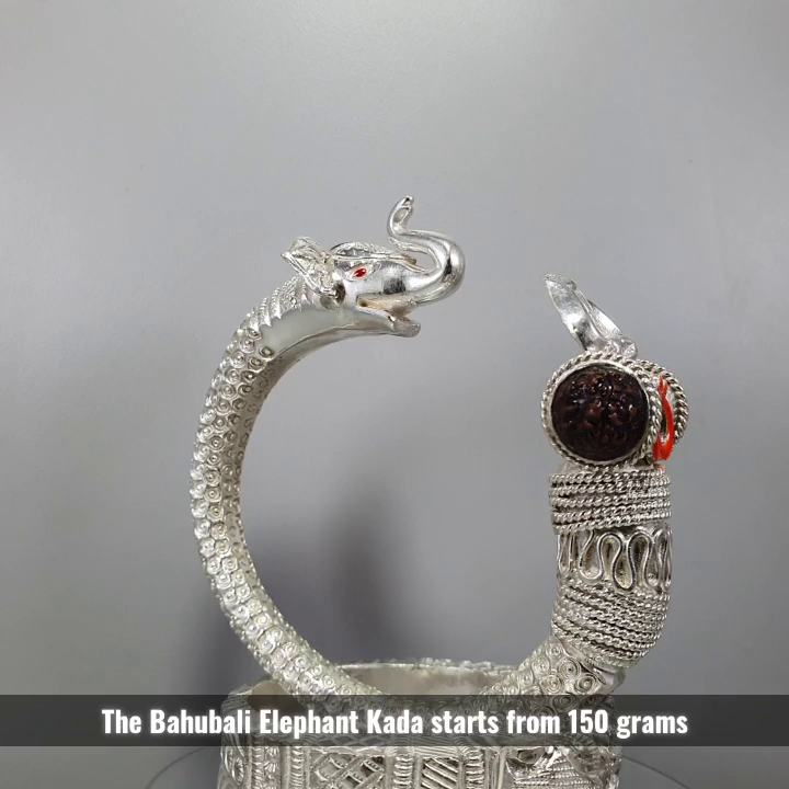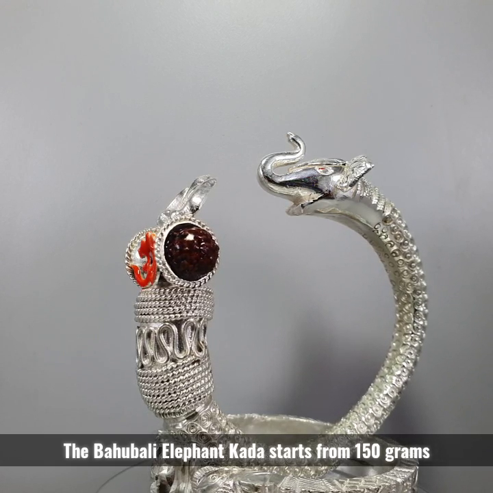 200gm 99% PURE SILVER HANDMADE TRISHUL ELEPHANT KADA SOLID