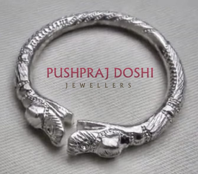 99% Pure Silver Handmade Aadiwasi Style NaharMukhi Kada for Men