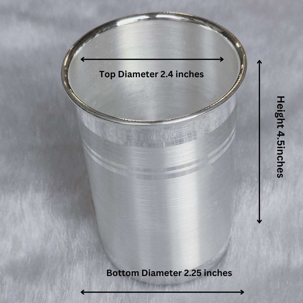 ♥ Dimensions: Top Diameter : 2.4inches, Bottom Diameter : 2.25 inches, Height : 4.5 inches. Capacity : 400 ml. Silver Weight : Approx. 107.500 gms.